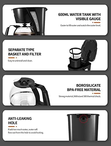 COMPACT SIZE-Space-saving 4 cups (1 cup = 5 oz) coffee machine with visible 600ml large capacity tank, perfect for home and Office use.