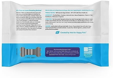 Pets can boot the scoot with vet-recommended Glandex pet cleaning wipes and anal gland supplements for dogs! Anal gland problems stink, but with Glandex dog wipes cleaning, deodorizing, and refreshing pets’ rear ends is easier for pets and pet parents alike! Natural Deodorizers and a Fresh Scent help erase unpleasant odors and wipe away messes associated with anal gland problems, while calming Aloe Vera makes our wipes extra gentle on delicate skin. Glandex deodorizing pet wipes for cats and dogs are perfect for cleaning the rear-end after gland expression, or for promoting better hygiene and health in the anal area. Glandex Advanced Chews are the answer for pets needing vet-strength support for scooting on the carpet, licking their rear end, or constipation related to anal gland health. These chews are made with higher levels of dog Probiotics, Fiber, Prebiotics, and Digestive Enzymes to support GI function in dogs who need extra help booting the scoot! We also include Quercetin for dog itch relief in the rear end, and to support a normal immune response to allergies affecting anal gland health. All Vetnique products are vet-formulated, made in the USA with premium ingredients, and contain no artificial preservatives.