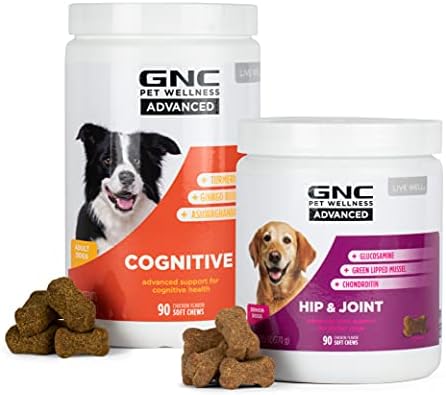 GNC Combo Pack for Pets Advanced Senior Bundle – Hip & Joint Support Supplements for Senior Dogs, Cognitive Support Supplements for Dogs, Hip Support Dog Chew – 90 Count Pet Dog Soft Chews