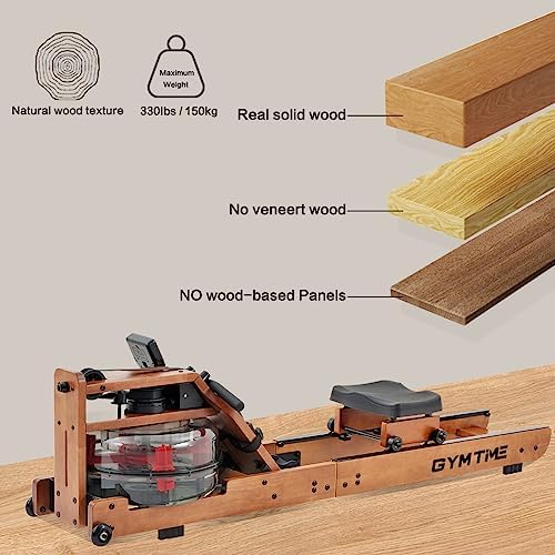 GYMTIME Water Rowing Machine for Home Use Fitness, Classic Solid Wood Rower Machine with LCD Monitor for Whole Body Exercise Cardio Training Indoor Gym Sports Training Equipment