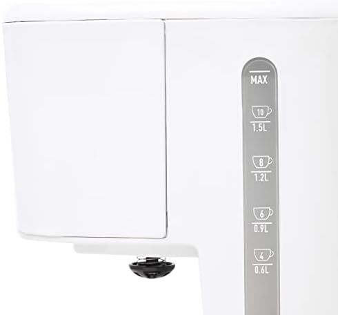 Features: 12 Cup Capacity, Keep-Warm Function, Glass Carafe (8″ Wide x 6″ Deep x 6.5″ High), Sleek and Modern Design
