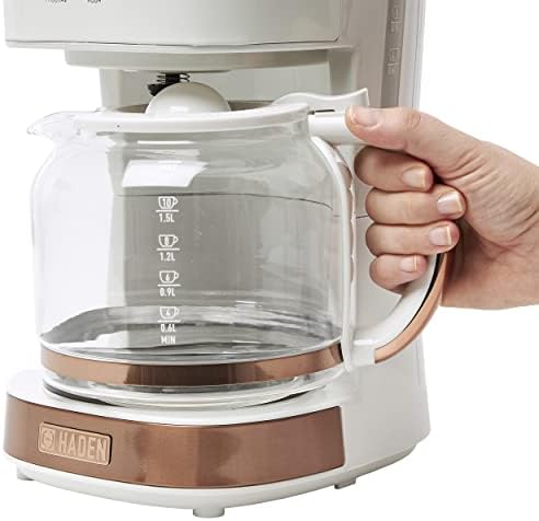 HADEN 75092 Heritage Innovative 12 Cup Capacity Programmable Vintage Retro Home Countertop Coffee Maker Machine with Glass Carafe, Ivory/Copper