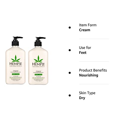 Hempz Original, Natural Hemp Seed Oil Body Moisturizer with Shea Butter & Ginseng, Pure Herbal Skin Lotion for Dryness, Nourishing Vegan Cream, Floral and Banana, 17 Fl Oz, 2 Pack