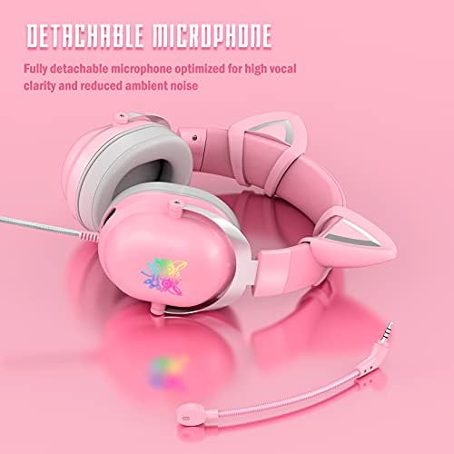 Including a 3.5mm to USB C Adapter to Work with USB C Jack Mobile Phones and Tablets Removable Cat Ears 360° Rotating & Detachable Microphone 100% Memory Foam Ear Pads Retractable Headband RGB LED Light
