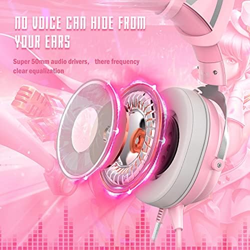 HOLULU X11 pink gaming headset is uniquely designed for girls. With cute cat ear design and colorful LED backlight, this headset creates an ideal atmosphere for enjoying music, streaming or playing video games. With surround sound headphones and noise canceling microphone, it helps the users get crystal clear surround sound, and at the same time be heard by people on the other side clearly thus enjoy non-interrupted communication.