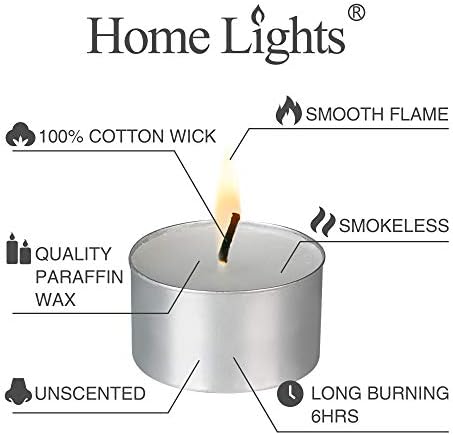 HomeLights Unscented White Tealight Candles -100 Pack, 6 to 7 Hour Burn Time Smokeless Tea Light Candles, Mini Votive Paraffin Candles with Cotton Wicks for Shabbat, Weddings, Christmas, Home Decor