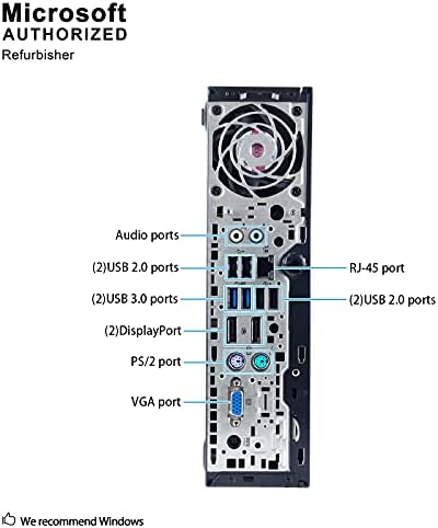 Ports: (2) USB 3.0 ports; (4) USB 2.0 ports; (1) VGA video port; (2) DisplayPort; RJ-45; PS/2 keyboard and mouse ports.