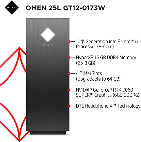 HP OMEN 25L Gaming Desktop PC, RTX 2060 Super Graphics Card, Intel Core i7-10700F Processor, 16GB RAM, 512GB SSD, Windows 10 Home w/ Accessories