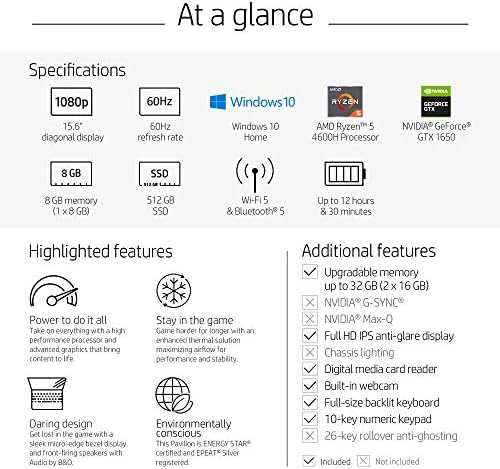 HP Pavilion Gaming 15 Laptop, NVIDIA GeForce GTX 1650, AMD Ryzen 5 4600H, 8GB DDR4 RAM, 512 GB PCIe NVMe SSD, 15.6″ Full HD, Windows 10 Home, Backlit Keyboard (15-ec1010nr, 2020 Model)