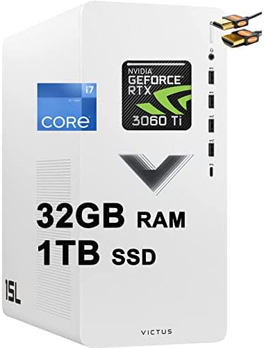 HP Victus 15L Gaming Desktop Computer Intel 12-core i7-12700F Processor 32GB RAM 1TB SSD Geforce RTX 3060 Ti 8GB Graphic with LHR Bluetooth USB-C Win11 White + HDMI Cable