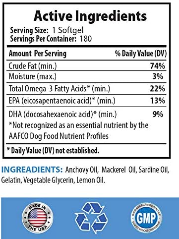 dog protein supplement – OMEGA 3 FISH OIL FOR DOGS – ADVANCED PREMIUM QUALITY – epa for dogs – 180 Softgels (1 Bottle)