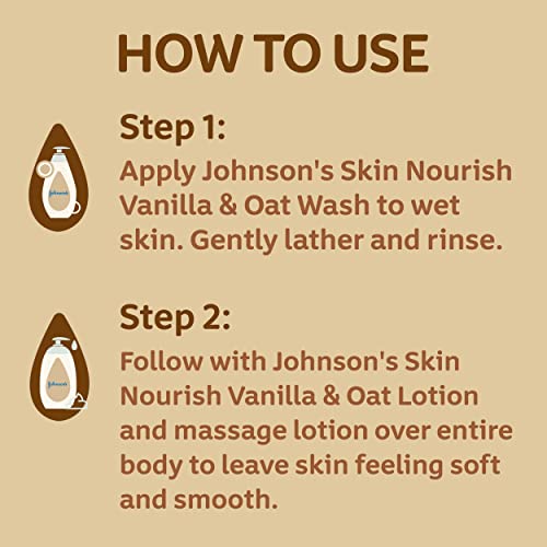 Johnson’s Baby Skin Nourish Moisturizing Baby Lotion for Dry Skin with Vanilla & Oat Scents, Gentle & Lightweight Body Lotion for The Whole Family, Hypoallergenic, Dye-Free, 16.9 fl. oz
