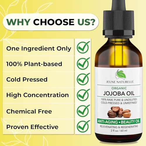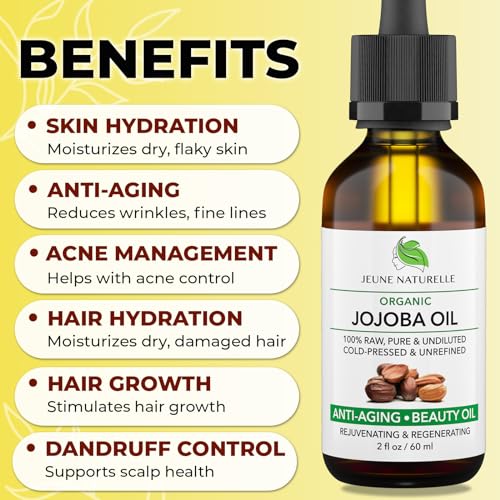 [FACIAL OIL]: Our Jojoba Oil for Face is the perfect facial oil. Its natural properties help to moisturize and restore your skin, leaving it with a healthy and radiant glow. This organic jojoba oil is the perfect addition to your skincare routine.