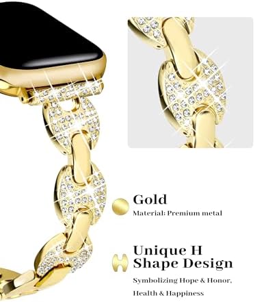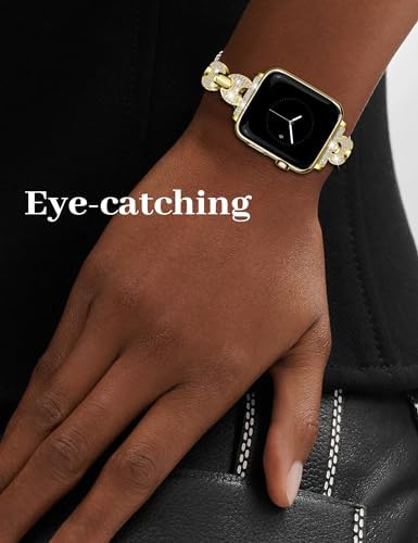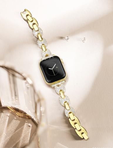 JR.DM Bling Bands Compatible with Apple Watch 41mm 40mm 38mm 45mm 44mm 42mm, Women Glitter Diamond Jewelry Dressy Chain Bracelet Metal Watch Strap for iWatch Series SE 9/8/7/6/5/4/3/2/1, Gold
