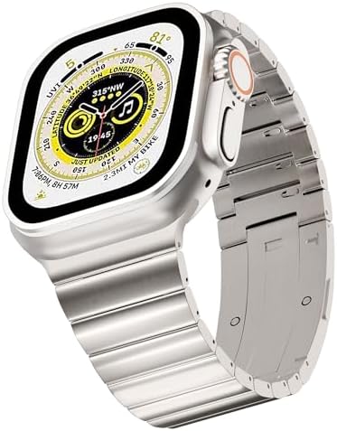 LDFAS Compatible for Apple Watch Ultra 2 Band 49mm Titanium Metal Strap with Hidden Buckle Compatible for Apple Watch Ultra/Series 9/8 45mm Bands