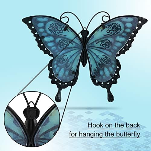 LIFFY Metal Butterfly Wall Decor Glass Outdoor Wall Art Sculptures 12″ Hanging Garden Decorations Indoor Home Decorative Ornaments for Patio Yard Fence Bedroom Living Room