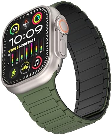 Magnetic watchband Compatible with Apple Watch Band 49mm 45mm 44mm 42mm Thin Silicone Replacement Wristband Strong Magnet link for iWatch SE SE2& Series 9/8/7/6/5/4 Ultra 2,AA-Army Green