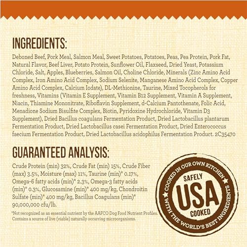 Merrick Lil’ Plates Grain Free Real Texas Beef and Sweet Potato Dry Dog Food with Freeze Dried Raw Dog Food Bites is crafted specifically for small breed dogs. With real deboned beef as the first ingredient, this small breed dog food dry recipe helps to maintain healthy muscles and energy levels. This grain free dry dog food for small dogs has small dog food kibble plus real, whole freeze dried raw dog food beef pieces for enhanced nutritional benefits and fresh taste. Crafted without grains or gluten, this healthy dog food has probiotics and prebiotic fiber for healthy digestion. This natural dog food for small dogs has leading levels of glucosamine and chondroitin to support healthy hips and joints. This beef dog food with sweet potatoes and freeze dried dog food beef pieces, offers complete and balanced nutrition with omega-6 and omega- 3 fatty acids that help maintain a healthy coat and skin. Merrick dog food recipes are crafted in our Hereford, TX kitchen and cooked in the USA.