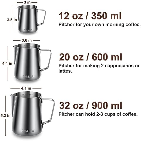 Careula 12oz, 20oz, and 32oz milk pitcher are commonly used for various coffee drinks: