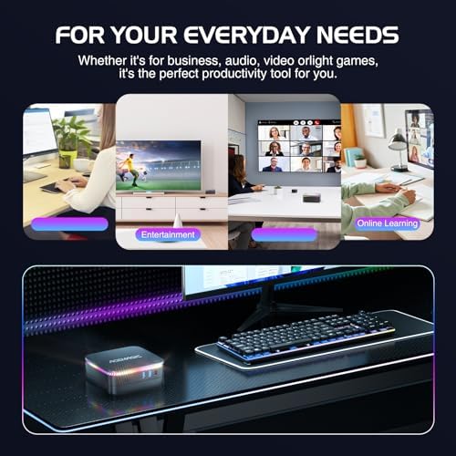 Mini PC Gaming RGB AK1 Plus, Intel N95(up to 3.4GHz) 12th Gen Processor Mini PC, 16GB RAM 1TB SSD, Dual 4K HDMI, Small PC, 2.4/5G WiFi, Bluetooth, Business/Office/HTPC