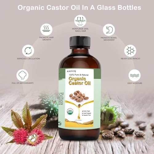MMPANG 100% Pure Cold Pressed Castor Oil USDA Certified Organic Glass Bottle Hexane Free for Stimulate Growth Hair, Moisturize Body Skin & Promotes Intestinal Digestion 250 ML/8.45 OZ