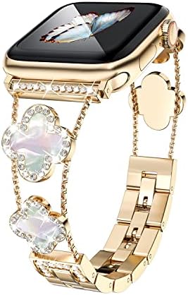 Musk-MSKR diamond metal band adds sparkle to your watch – Compatible with Apple Watch Series 8/7/6/5/4/3/2/1SE/Ultra – Clover is simple and stylish, fits women’s sizes 38mm 40mm 41mm 42mm 44mm 45mm 49mm.(Gold/black, 42mm/44mm/45mm)