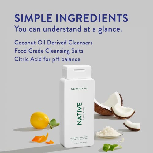 Native Natural Body Wash for Women, Men | Sulfate Free, Paraben Free, Dye Free, with Naturally Derived Clean Ingredients Leaving Skin Soft and Hydrating, Eucalyptus & Mint 18 oz – 2 Pk