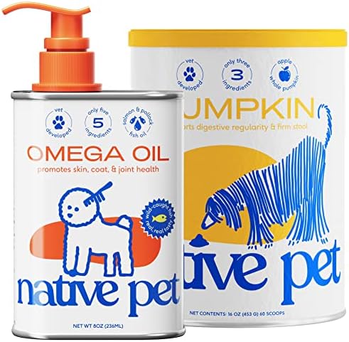 Native Pet Omega Oil for Dogs & Pumpkin for Dogs | Dog Fish Oil Supplements | All-Natural, Organic Pumpkin Fiber for Dogs | 8 Oz. Omega Oil & 16 Oz. Pumpkin Powder
