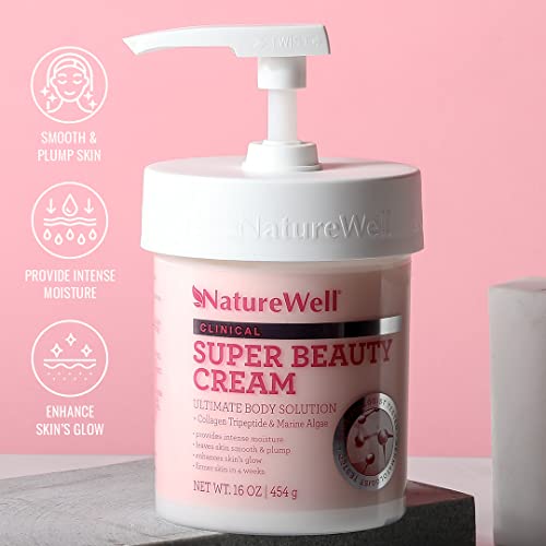 NATURE WELL Clinical Super Beauty Cream for Face & Body, Ultimate Beauty Solution Featuring Collagen Tripeptides That Provides Intense Hydration While Leaving Skin Beautifully Plump, 16 Oz