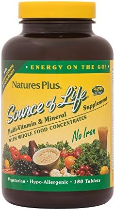 NaturesPlus Source of Life No Iron Tablets – 180 Vegetarian Tablets – Whole Food Multivitamin & Mineral Supplement, Energy & Immunity Booster- Gluten-Free – 60 Servings