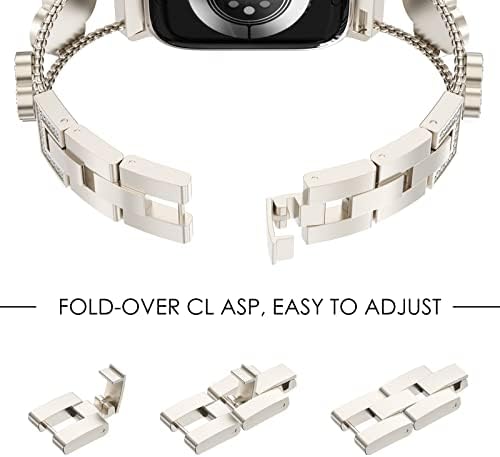 NewWays Compatible for Apple Watch Band 41mm 40mm 38mm Series7 SE 6 5 4 3, Jewelry Bracelet for iWatch Band Womens, Starlight Link with White Leather