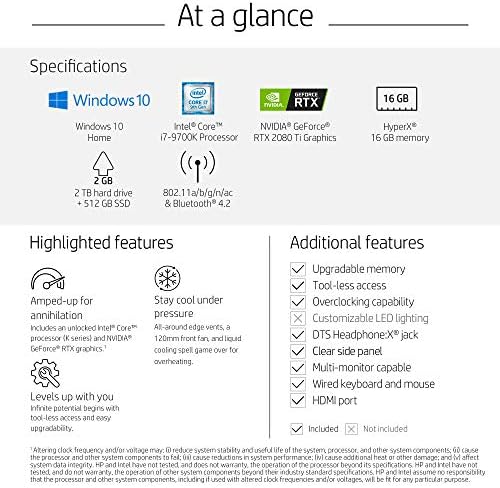 OMEN by HP Gaming Desktop Computer, Intel Core i7-9700K Processor, NVIDIA GeForce RTX 2080 Ti 11 GB, HyperX 16 GB RAM, 2 TB hard drive, 512 GB SSD, Windows 10 Home (880-191, Black)