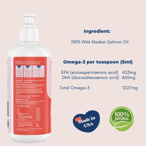 Perkytails Pure Wild Alaskan Salmon Oil for Dogs and Cats – 16oz, Premium Omega 3 Supplement Fish Oil, Dog Vitamins and Supplements for Skin and Coat, Joint Support, Immune Support and Allergy Relief