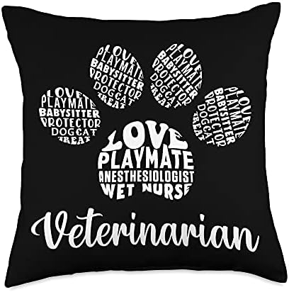 Pet Paw Medicine Animal Lover Rescue Puppy Gift Paw Veterinarian Vet Tech Veterinary Technician Dog Doctor Throw Pillow, 18×18, Multicolor