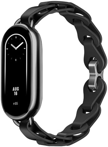 The PINHEN Strap Compatible with Xiaomi Smart Mi Band 8 is a stylish and adjustable watch bracelet designed for women. It is made of high-quality materials, including soft and durable silicone, and is comfortable to wear. The mi band 8 band features a ring buckle that can be adjusted to fit most wrist sizes, making it a perfect accessory for any occasion. The watch bracelet is also easy to attach and remove, whether you are working out, running, or just going about your daily routine, this strap is a great way to keep your Xiaomi Smart Mi Band 8 secure and stylish.