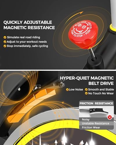 On the one hand, it has a Magnetic resistance, which can make you very quiet during riding. Instead of the noise caused by friction of the other bike. On the other hand, it has more flywheel weight and higher quality heavy steel, which shows It will be more stable and secure.