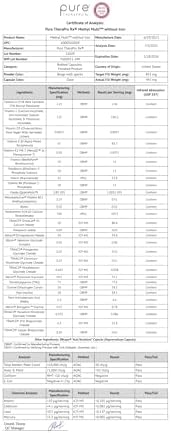 Pure TheraPro Rx Methyl Multi without Iron is a premium quality multivitamin, multimineral, and supplement blend designed to support optimal health. Each capsule features activated vitamins such as folate as Quatrefolic (5-MTHF) for maximum utilization, as well as Albion TRAACS chelated mineral complexes. Plus, antioxidant protection with vitamins C and E, and phase I detoxification with beta-carotene and selenium. Quatrefolic is the glucosamine salt of (6S)-5-methyltetrahydrofolate, which is a “finished” form of folate that the body can immediately use. It is absorbed in the small intestine via a carrier-mediated mechanism, allowing for a much higher folate uptake. The product also contains MecobalActive Vitamin B12, a patented form of methylcobalamin that is highly pure with no harmful solvents. All Pure TheraPro Rx formulations on Amazon meet or exceed cGMP Quality Standards, and are manufactured in an NSF and GMP-certified facility in the United States.