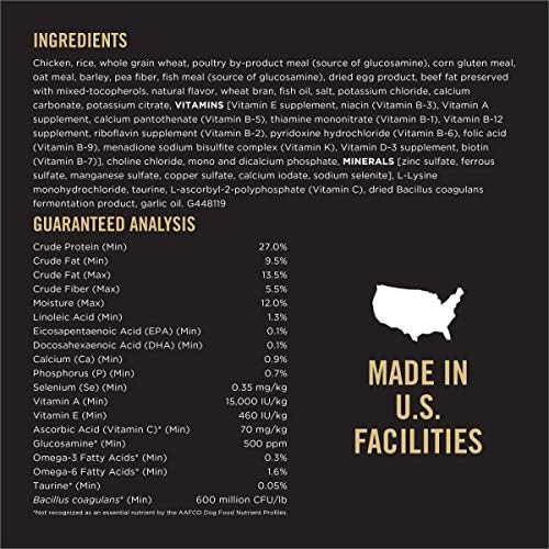 Help keep your large breed dog’s weight in check when you feed him Purina Pro Plan Dog Food Weight Management Large Breed Chicken and Rice Formula adult dry dog food. Each serving of this tasty large breed dog food formula contains high-quality protein, including chicken as the first ingredient. Plus, this weight management dog food features 27 percent protein and 9.5 percent fat to help him maintain an ideal weight and body condition. Natural prebiotic fiber, sourced from wheat bran, helps promote your canine companion’s digestive health. This dog dry food formula from Purina Pro Plan contains 15 percent less fat than Pro Plan ESSENTIALS Shredded Blend Chicken and Rice Formula for Adult Dogs. Designed to provide 100 percent complete and balanced nutrition for overweight or less active adult dogs weighing over 50 pounds, this super-premium dry dog food offers a specialized pet food formula created just for your favorite canine.