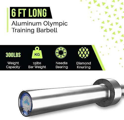 【 OLYMPIC GRADE DURABILITY 】: For rigorous use and intense workout sessions, our 6ft strength training bar is constructed with high-quality aluminum that carries up to 300 LBS weight, designed to fit Olympic weight plates with a 2-inch hole, giving that perfect starting point for beginners to learn and master their technique.