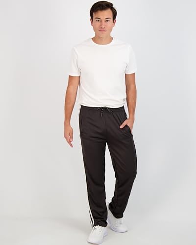 Real Essentials 3 Pack: Men’s Mesh Athletic Gym Workout Lounge Open Bottom Sweatpants with Pockets (Available in Big & Tall)
