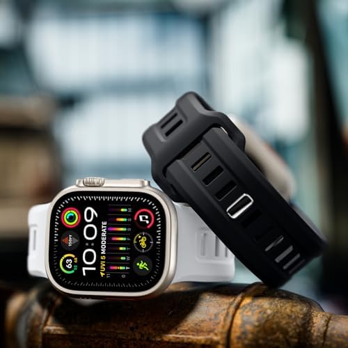 Rugged Sport Bands Compatible with Apple Watch Ultra/Ultra 2 Band 49mm 45mm 44mm 42mm Men Women, Soft Waterproof Silicone Replacement Strap for iWatch Series SE2 SE 9 8 7 6 5 4 3 2 1, 2 Pack