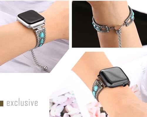 Secbolt Turquoise Bands Compatible with Apple Watch Band 38mm 40mm 41mm iWatch SE Series 9/8/7/6/5/4/3/2/1, Boho Metal Bracelets for Women