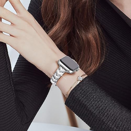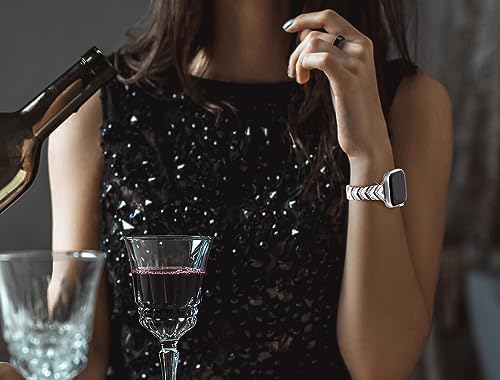 Secbolt Two-Tone Bling Bands Compatible with Apple Watch Band 38mm 40mm 41mm Women, Slim Dressy Metal and Resin Bracelet for iWatch Series 9/8/7/6/5/4/3/2/1/SE