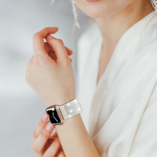 Seizehe Bling Diamond Elastic Bands Compatible with Apple Watch Band 49mm 45mm 44mm 42mm 41mm 40mm 38mm Women Men, Nylon Stretchy Solo Loop for Apple Watch Ultra 2 iWatch SE Series 9 8 7 6 5 4 3 2 1