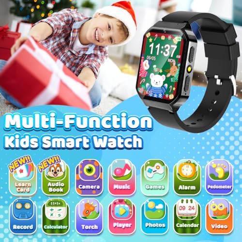 Smart Watch for Kid Age 4 5 6 7 8 9 10 Boys Girls Learning Toy with 26 Puzzle Game 1.69″ Touch Screen HD Camera Video Music Player Alarm Clock Storybook Pedometer Christmas Birthday Gift Idea (black)