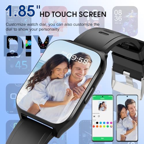 Sleek 1.85″ Touchscreen Design: Our MT65 women men watches features a 1.85-inch high-definition full-touch color screen, providing you with a better visual and operating experience. The smartwatch app also offers over 100 personalized dial wallpapers to choose from, and you can even customize your dial wallpaper with your favorite photos. With two different style straps – a sports strap and a regular strap – you can switch between sports and leisure to highlight your unique personality.