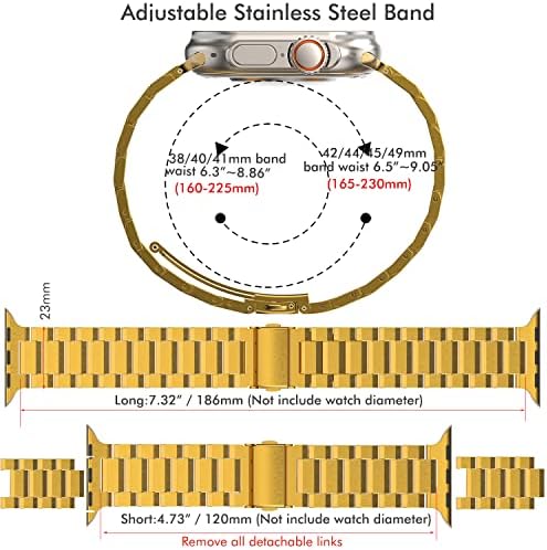 Stainless Steel Watch Band Compatible with Apple Watch Bands 49mm 45mm 44mm 42mm 40mm 41mm 38mm, Men Women Metal Watch Strap Waistband for iWatch Ultra Series 8 7 6 5 4 SE