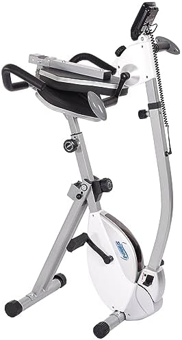 ENHANCED COMFORT – This fitness bike includes textured pedals, padded hand grips, ergonomic handlebars, and an extra-large cushioned, upholstered seat and backrest. This arm bike has a folding frame and built-in wheels for easy storage.