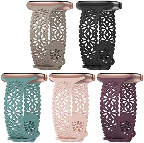 Steezrd 5 Pack Slim Lace Silicone Bands Compatible for Apple Watch Band 38mm 40mm 41mm 42mm 44mm 45mm 49mm, Thin Hollow-out Breathable Strap for iWatch Ultra/2 Series 9/8/7/SE/6/5/4/3/2/1 Women Men