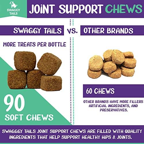 SWAGGY TAILS Glucosamine for Dogs, Hip and Joint Supplement, 90 Dog Treats – Joint Support Soft Chews for Dogs with MSM, Chondroitin, Antioxidants – Premium Arthritis Pet Supplements – Made in USA